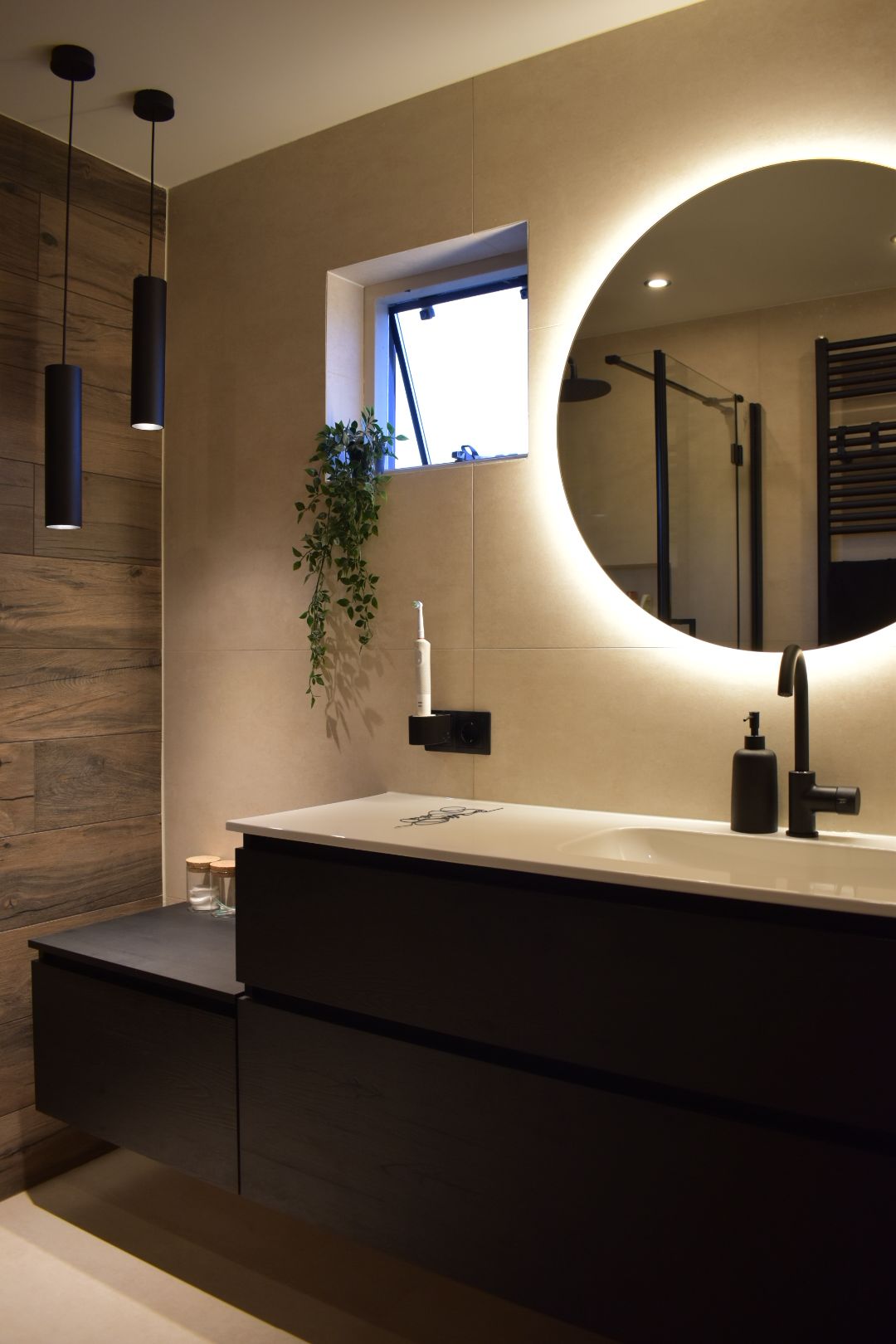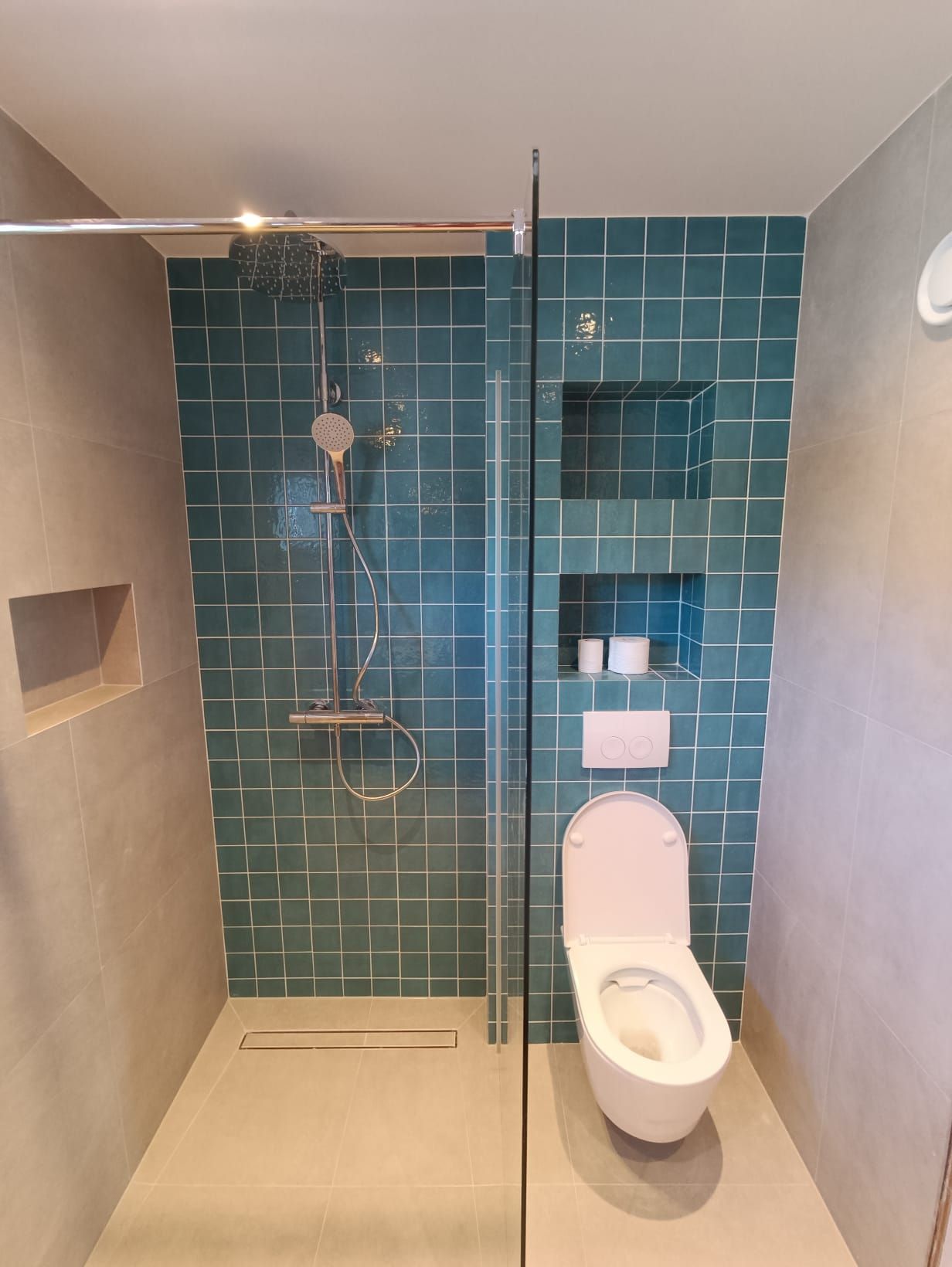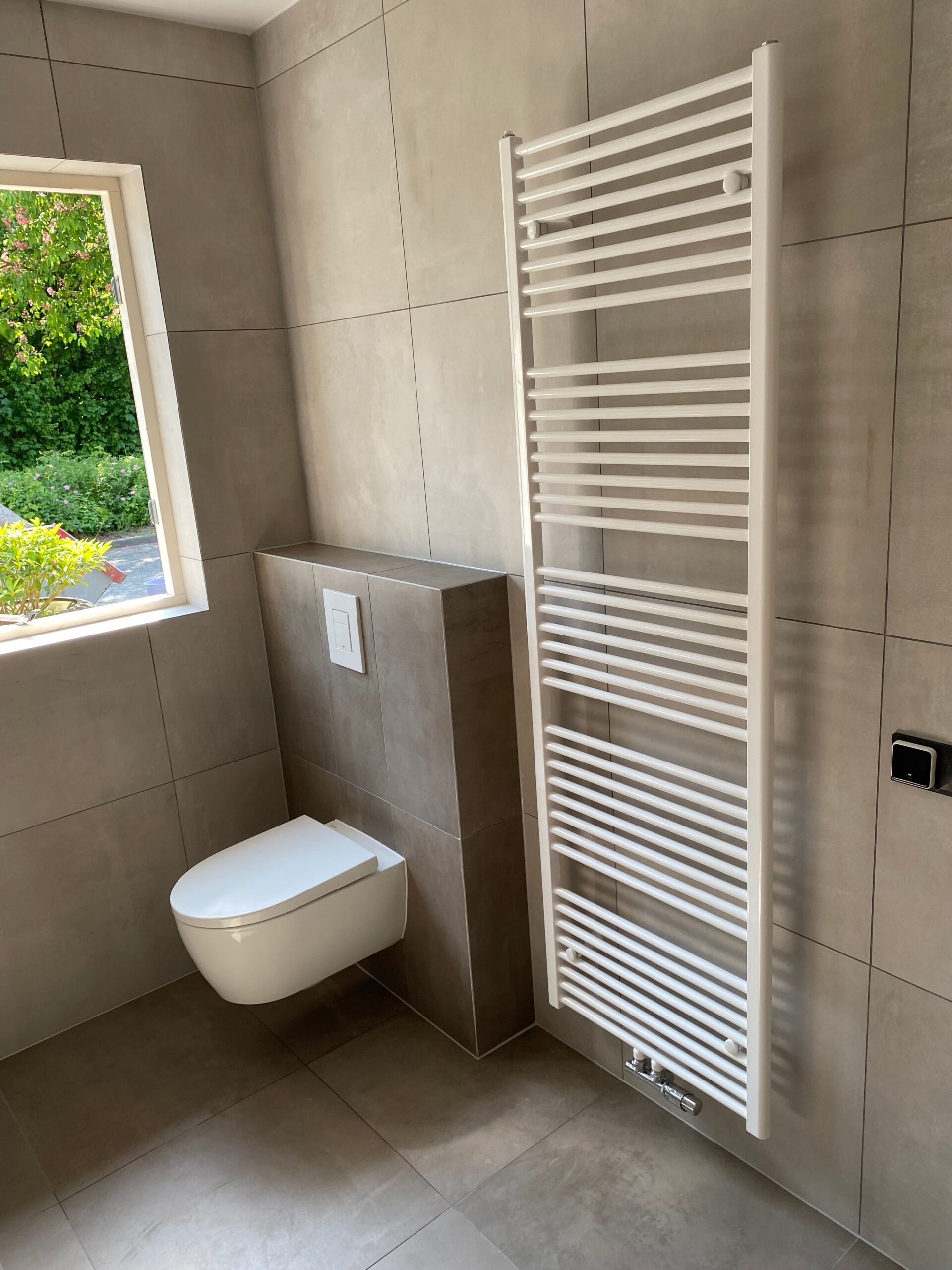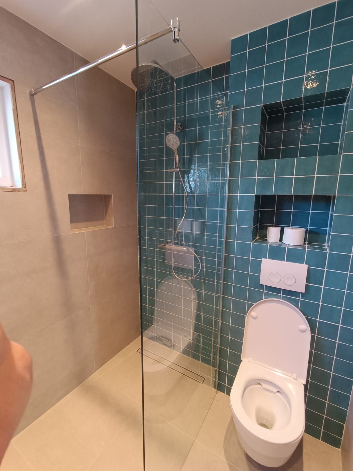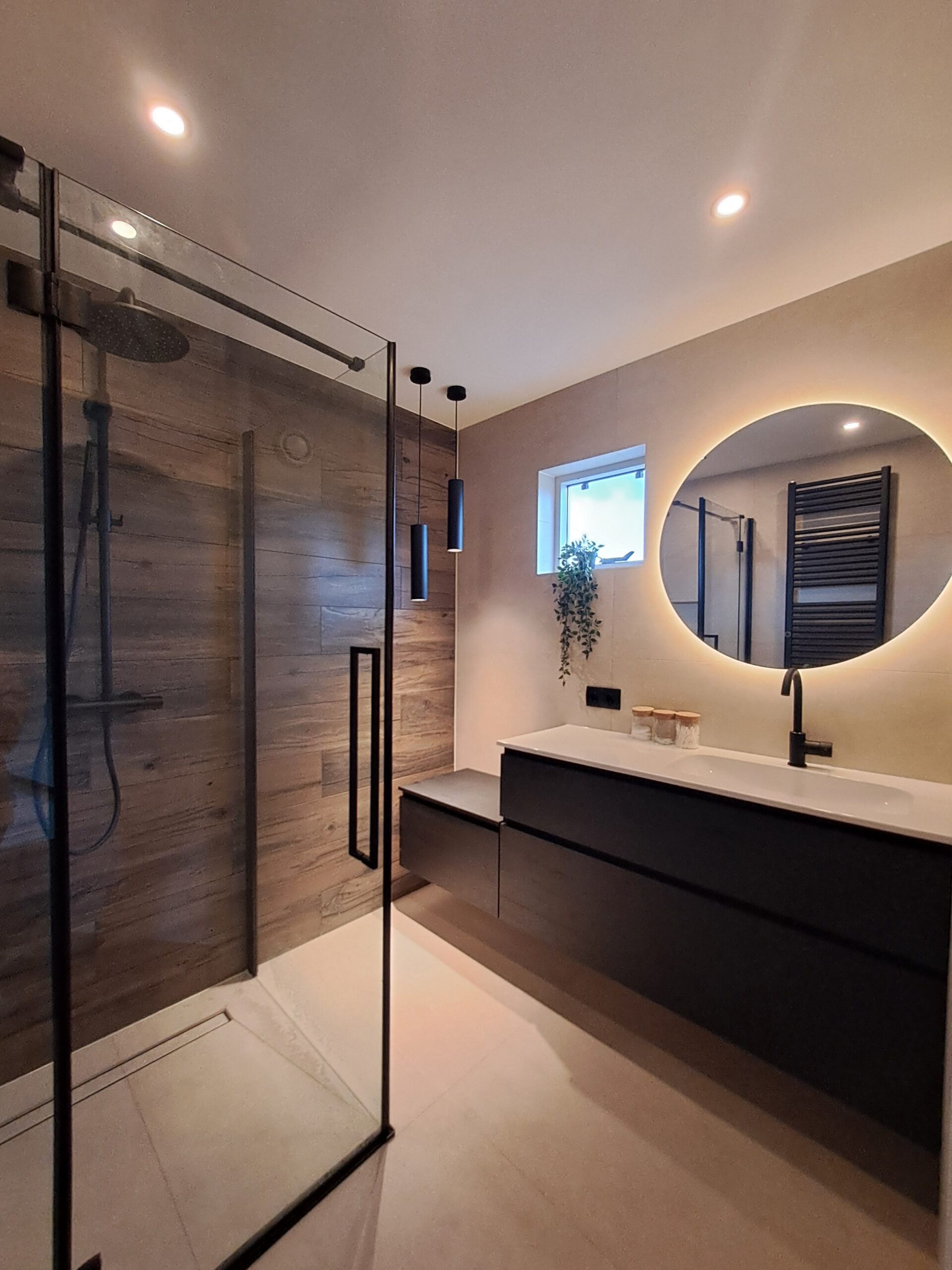 De opdracht was de oude badkamer compleet verwijderen, inclusief de vloer waar onder de beton cire 3 lagen tegels bleken te zitten. Vervolgens het weer opnieuw opbouwen van de badkamer.